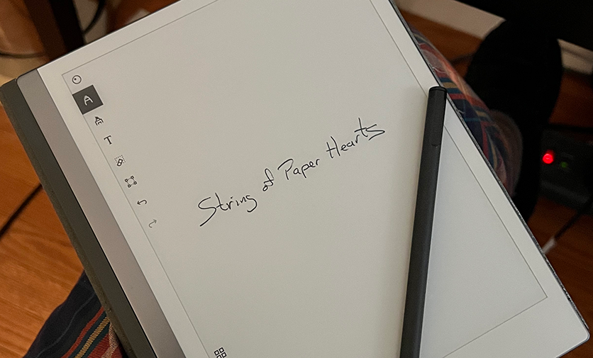 This string of paper hearts looks so delicate to me. The ends are firmly attached to the window frame head, but I wonder if the gentle breeze were a stronger wind might the string snap in two? There is a tropical storm off the New England coast, and for an instant I consider closing the window. But, the breeze is gentle, and cool, and a welcome change from the troubling heat this summer has brought forth. It is distant enough to bring the string of paper hearts to life. So instead, I simply lie comfortably in bed, looking up to watch the dancing hearts. I allow myself to enjoy the moment without worries, imagining, that maybe the breeze knows I’m here, and that I’m so grateful to be alive.